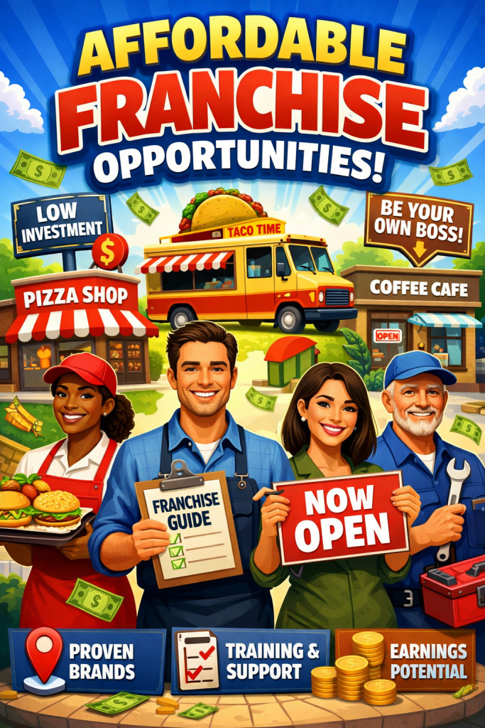 I currently have hundreds of Affordable Franchise Businesses available in many markets around the country! For more information and availability in your area, visit my website at: www.OpportunityYou.com or give me a call or text at 724-875-8050 to learn more!